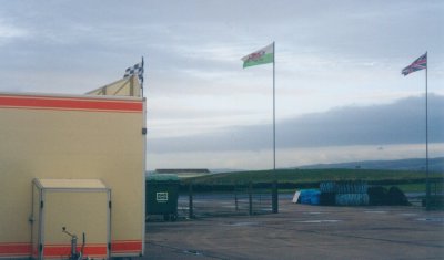 ウエールズの紋章「レッドドラゴン(紅い竜)」の旗の方が イギリス国旗よりも高く掲げてある。この辺に、何故かイギリスに対する ウエールズのこだわりがあるような....